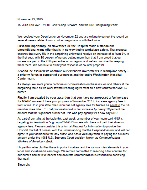 We are pleased to share that MedStar Washington Hospital Center nurses have, by majority, ratified a new three-year contract, which is effective March 1, 2026.